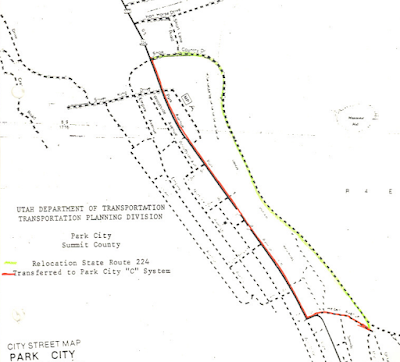 Snow Country Drive and the segment of Heber Avenue east of Marsac are now known as Deer Valley Drive, after the ski resort to the southeast, but this bypass remains the route of SR 224 through the Park City downtown area today. 224 has also since been expanded to a five-lane configuration everywhere from downtown Park City north to I-80.